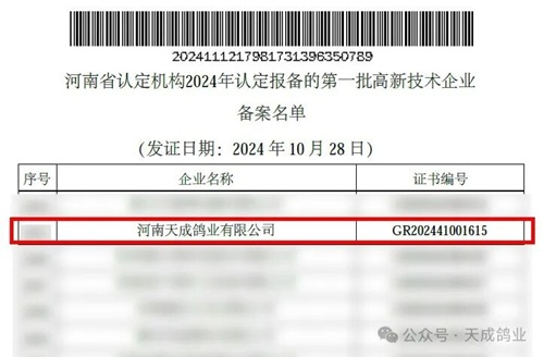 2024-11-03 10:08:00根据《河南省农业农村厅关于推荐培育种企雁阵的通知》要求,经企业申报,县、市农业农村部门审阅材料、把关推荐,省厅组织专家评审,会议研究等程序,拟遴选河南天成鸽业有限