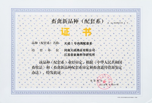 天成1号畜禽新品种(配套系)证书